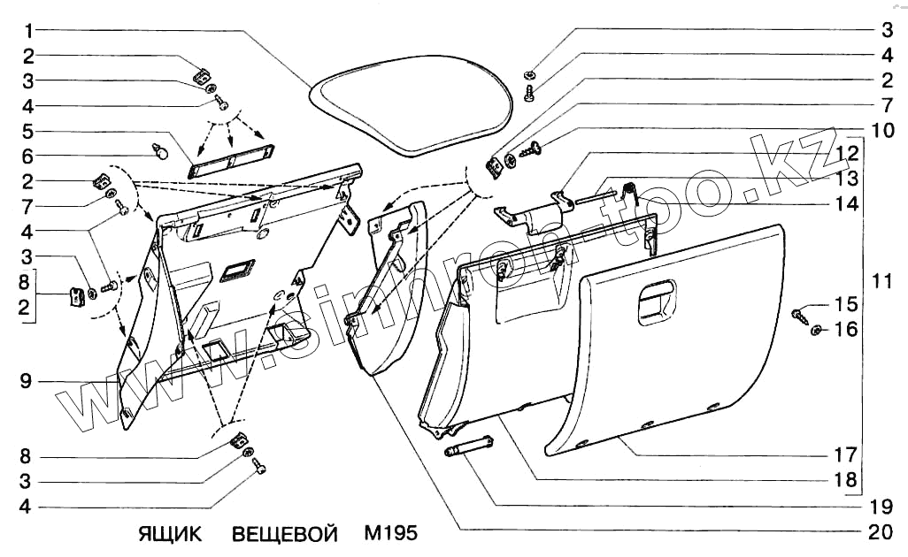 Каталог запасных частей к технике: ВАЗ-2123. Ящик вещевой