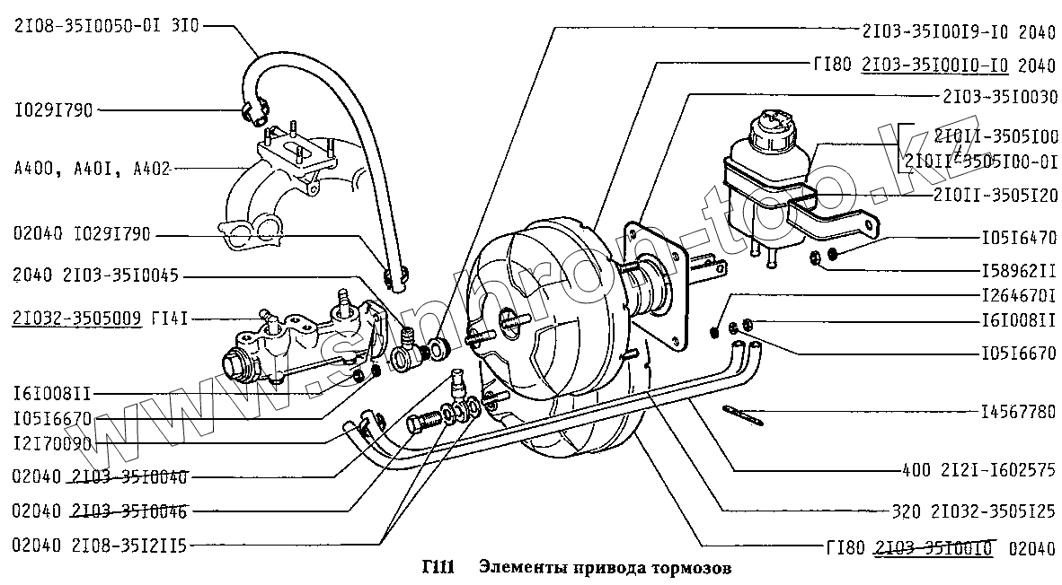 Каталог запасных частей к технике: ВАЗ-2131 (NIVA). Элементы привода тормозов