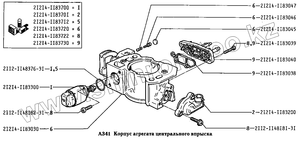 Каталог запасных частей к технике: ВАЗ-2131 (NIVA). Корпус агрегата центрального впрыска