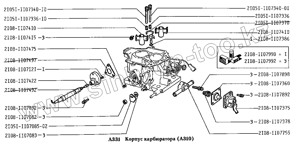 Каталог запасных частей к технике: ВАЗ-2131 (NIVA). Корпус карбюратора (А310)