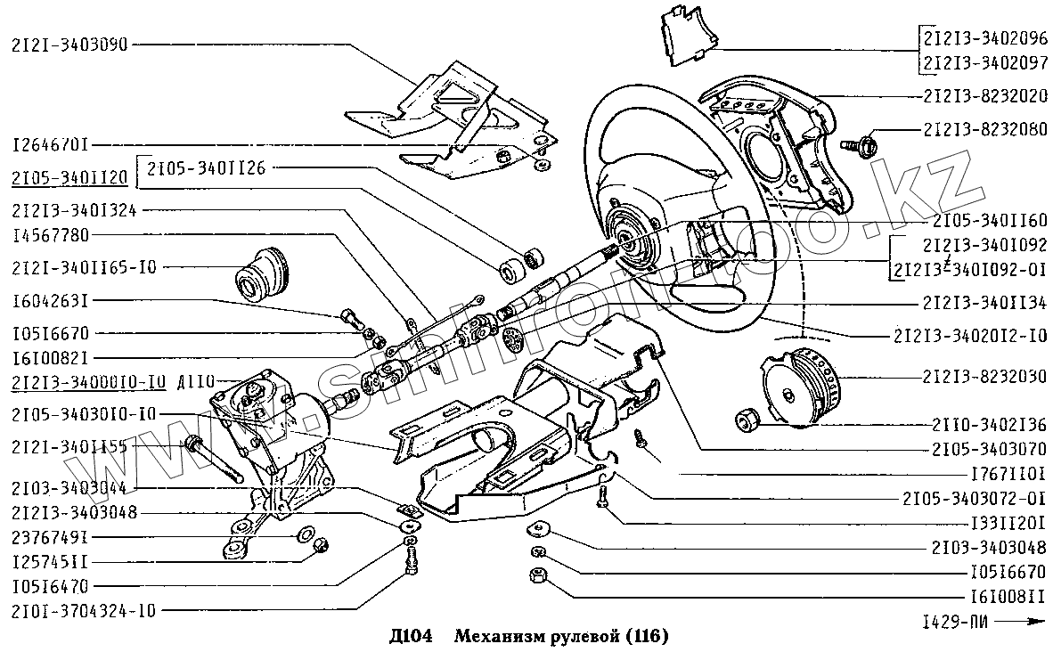 Каталог запасных частей к технике: ВАЗ-2131 (NIVA). Механизм рулевой (вариант исполнения: 116)