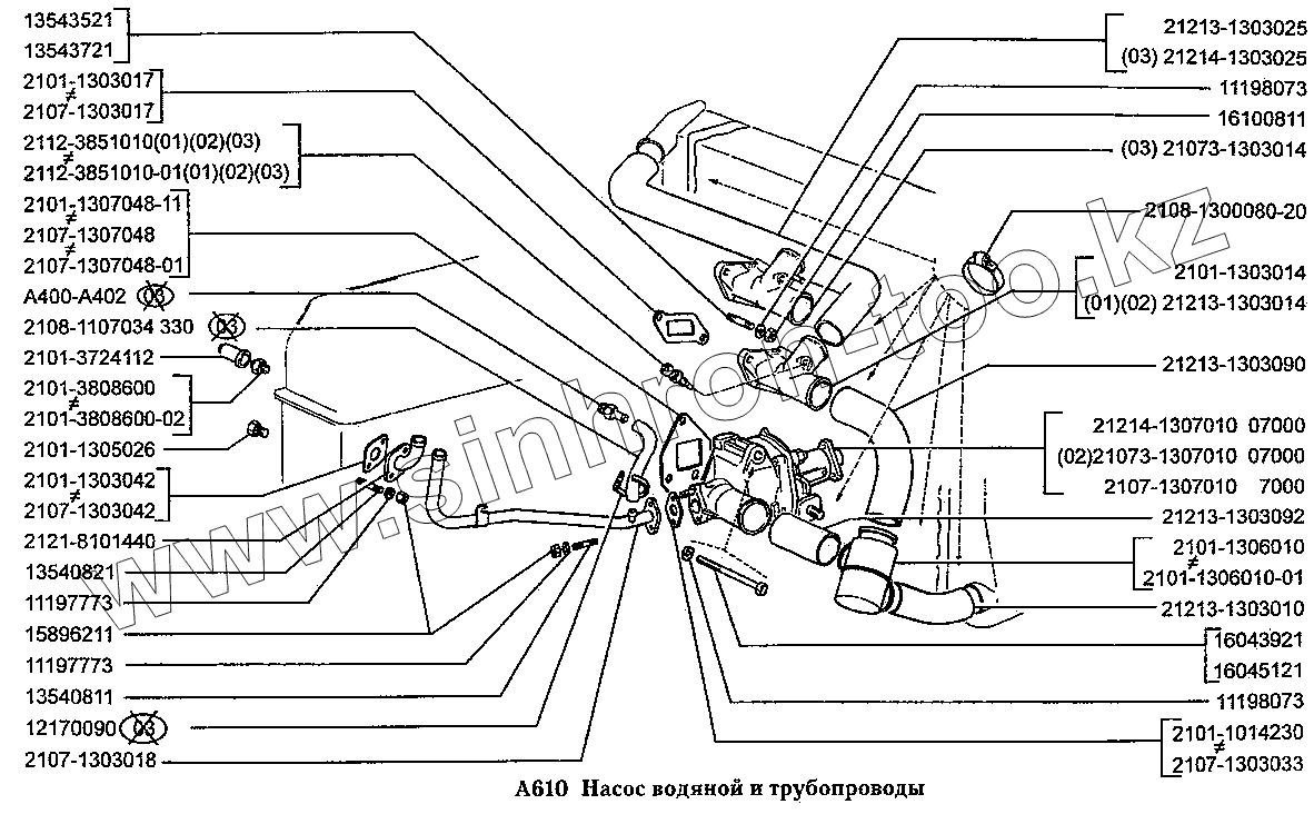 Каталог запасных частей к технике: ВАЗ-2131 (NIVA). Насос водяной и трубопроводы