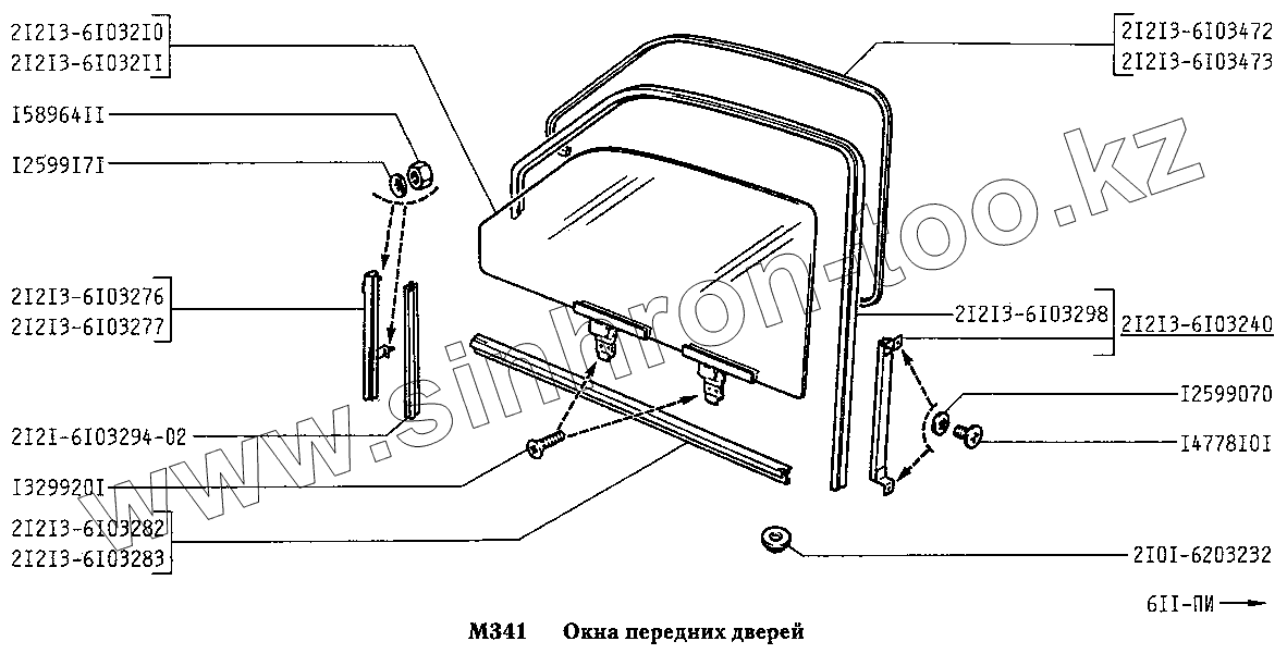 Каталог запасных частей к технике: ВАЗ-2131 (NIVA). Окна передних дверей