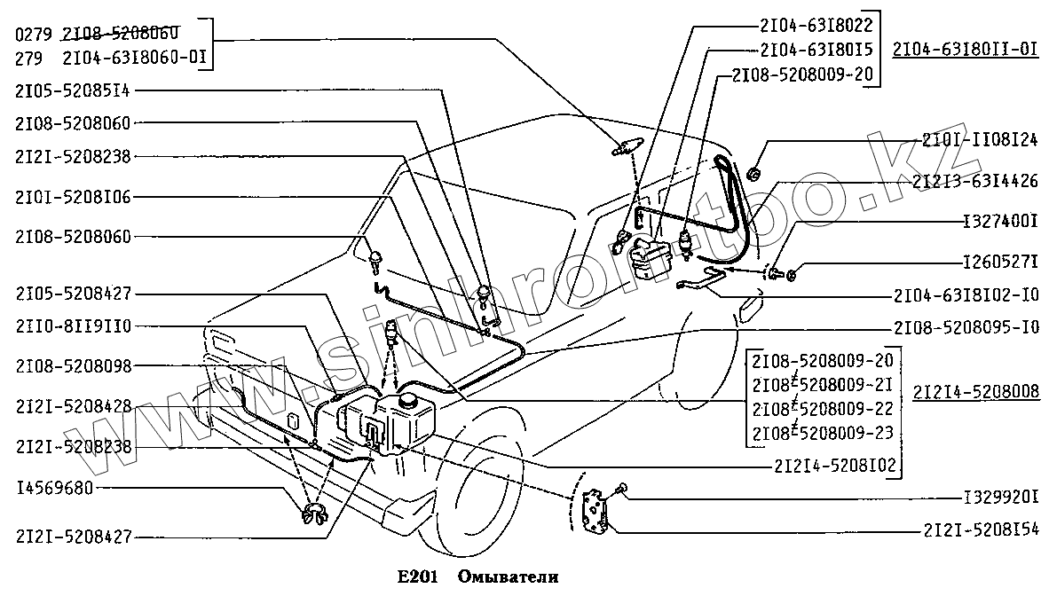 Каталог запасных частей к технике: ВАЗ-2131 (NIVA). Омыватели (вариант исполнения: Э)