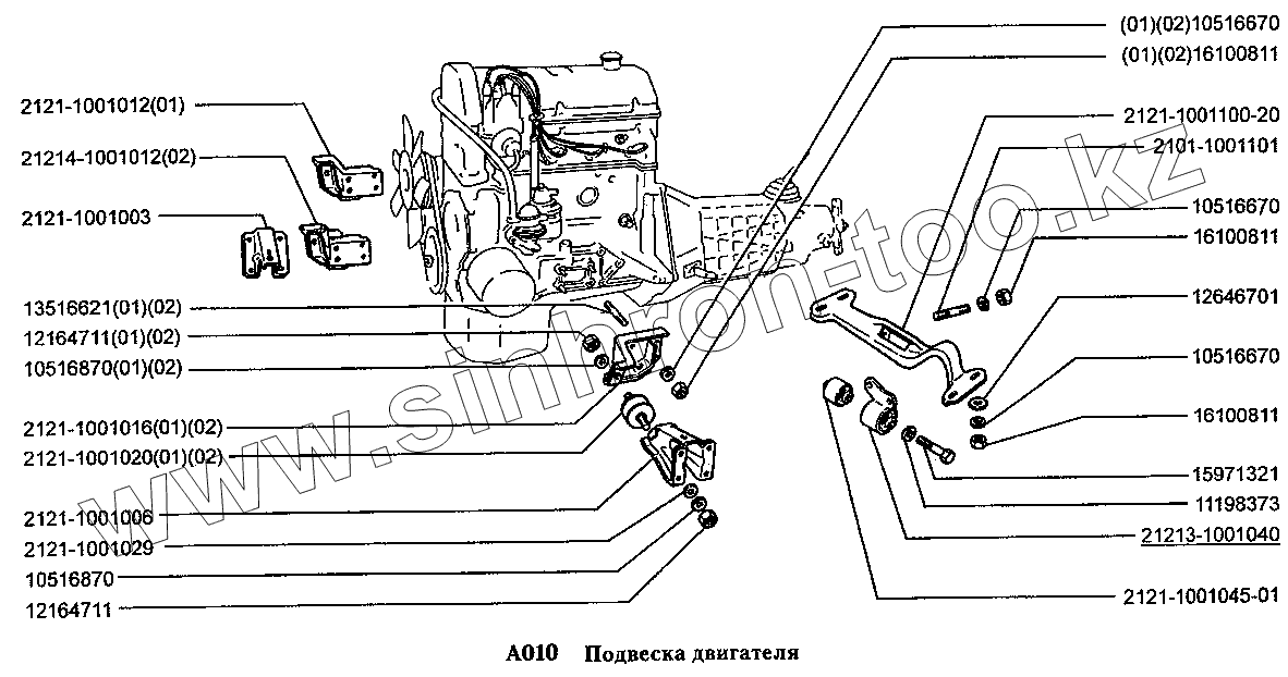 Каталог запасных частей к технике: ВАЗ-2131 (NIVA). Подвеска двигателя