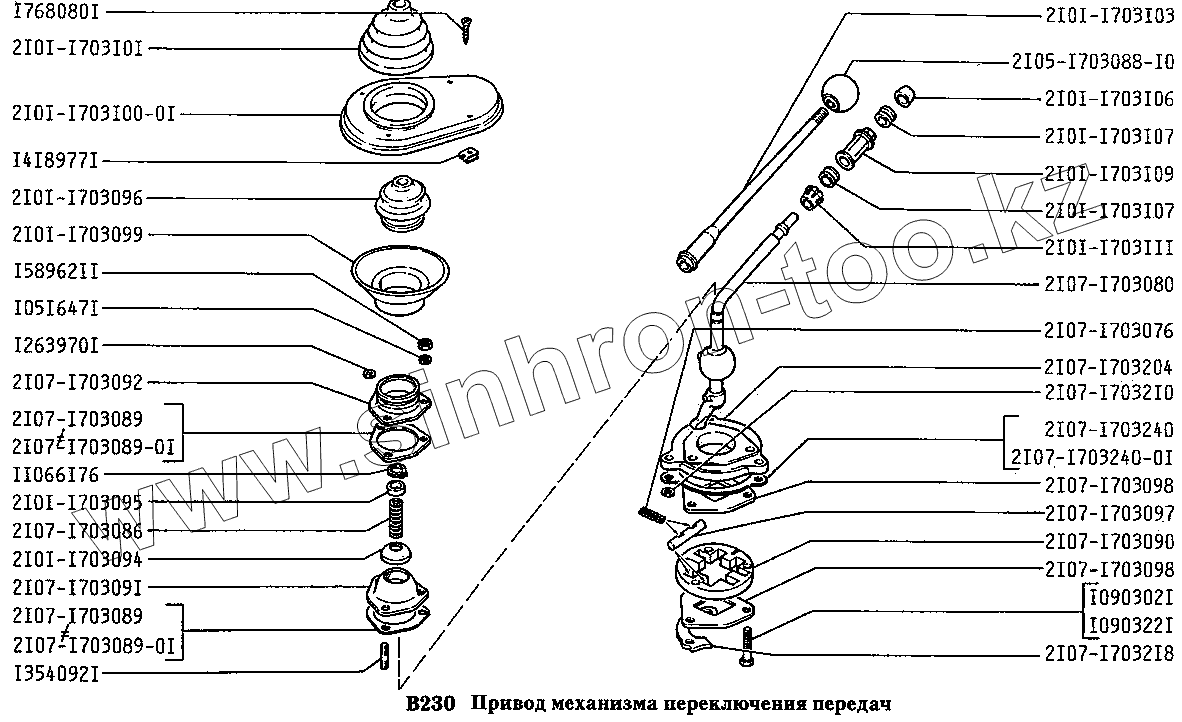 Каталог запасных частей к технике: ВАЗ-2131 (NIVA). Привод механизма переключения передач