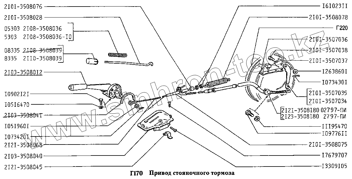 Каталог запасных частей к технике: ВАЗ-2131 (NIVA). Привод стояночного тормоза