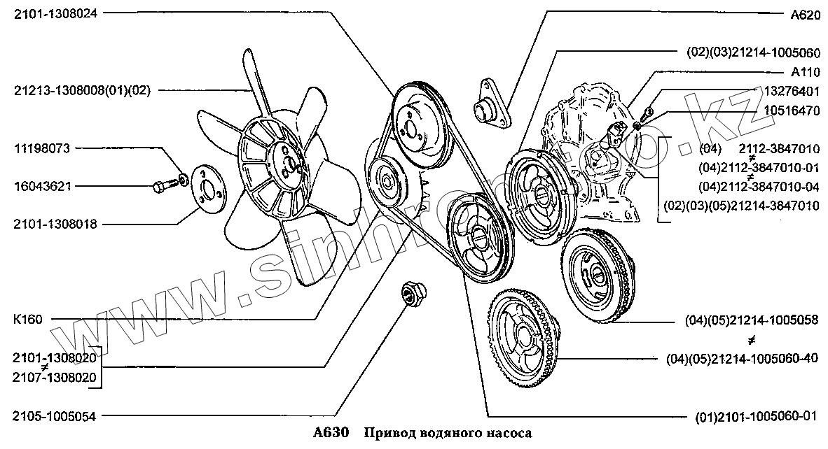 Каталог запасных частей к технике: ВАЗ-2131 (NIVA). Привод водяного насоса
