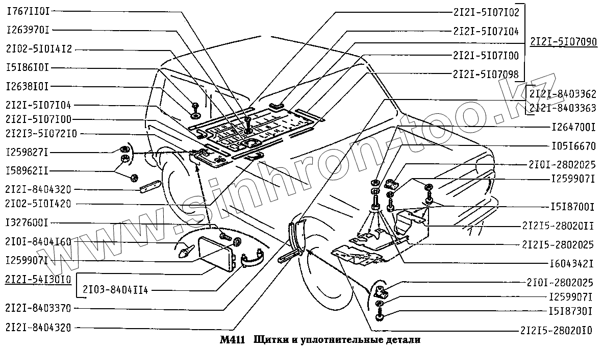 Каталог запасных частей к технике: ВАЗ-2131 (NIVA). Щитки и уплотнительные детали