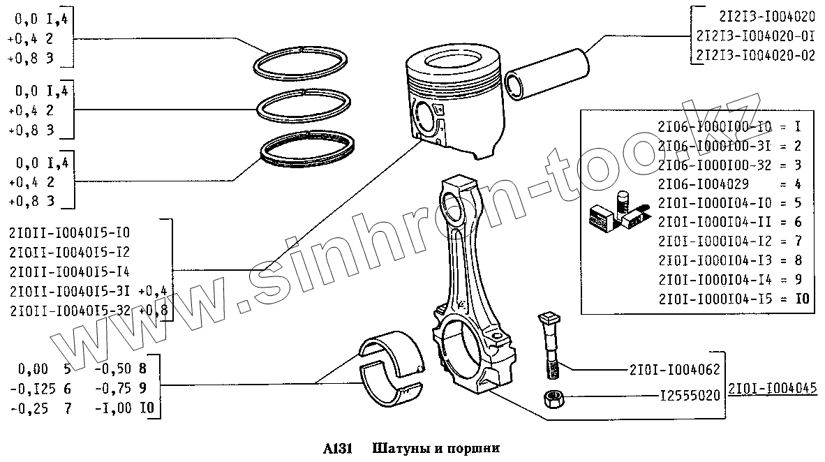 Каталог запасных частей к технике: ВАЗ-2131 (NIVA). Шатуны и поршни