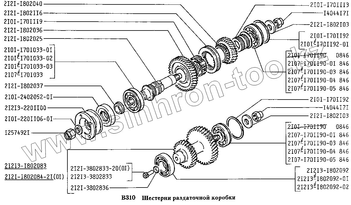 Каталог запасных частей к технике: ВАЗ-2131 (NIVA). Шестерни раздаточной коробки
