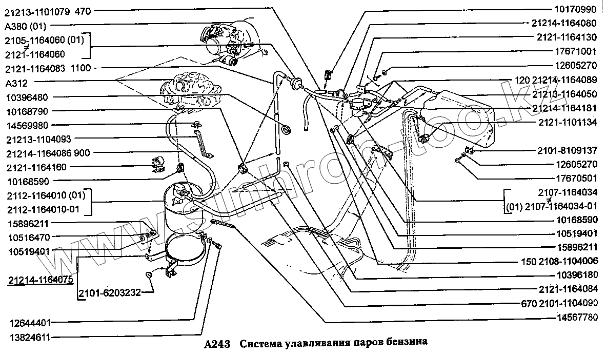 Каталог запасных частей к технике: ВАЗ-2131 (NIVA). Система улавливания паров бензина