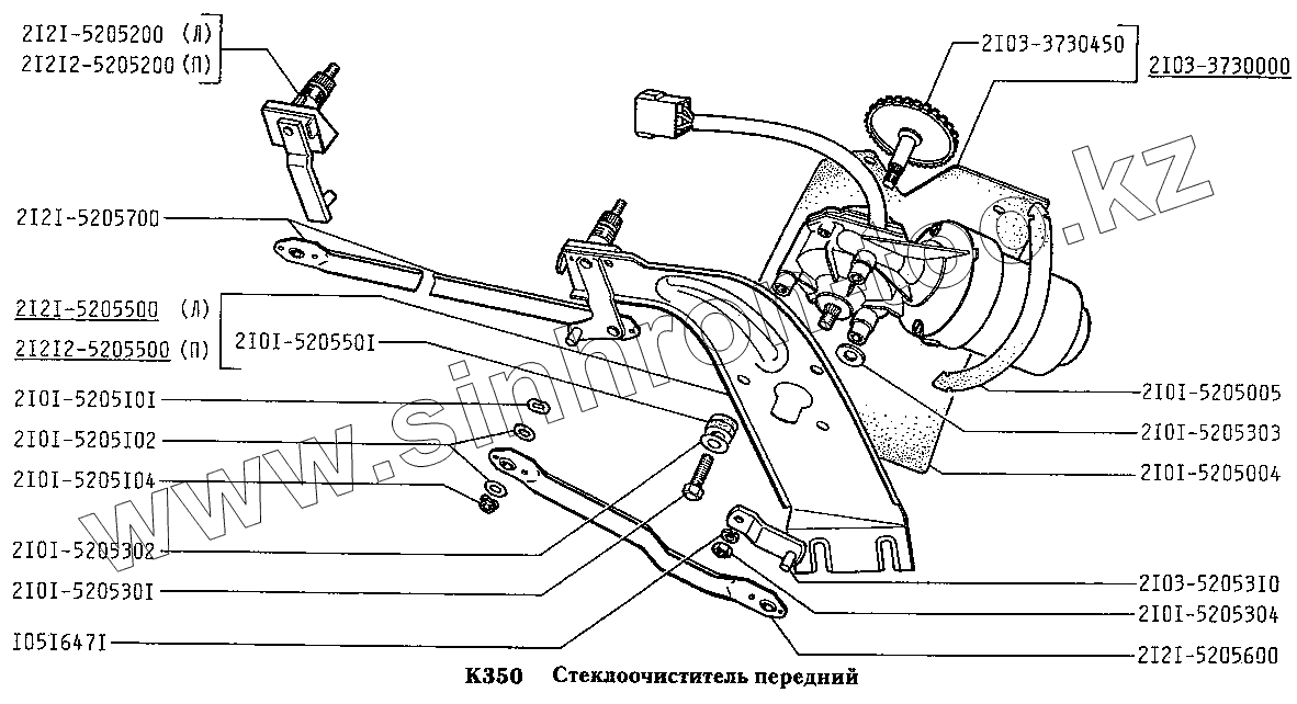 Каталог запасных частей к технике: ВАЗ-2131 (NIVA). Стеклоочиститель передний