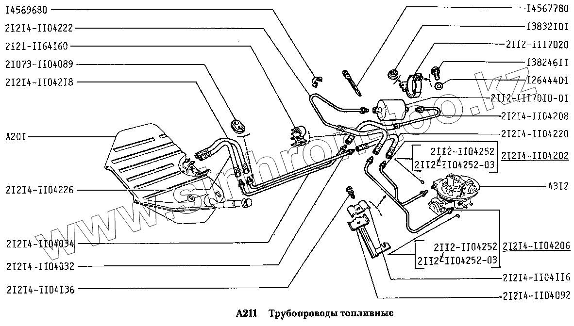 Каталог запасных частей к технике: ВАЗ-2131 (NIVA). Трубопроводы топливные