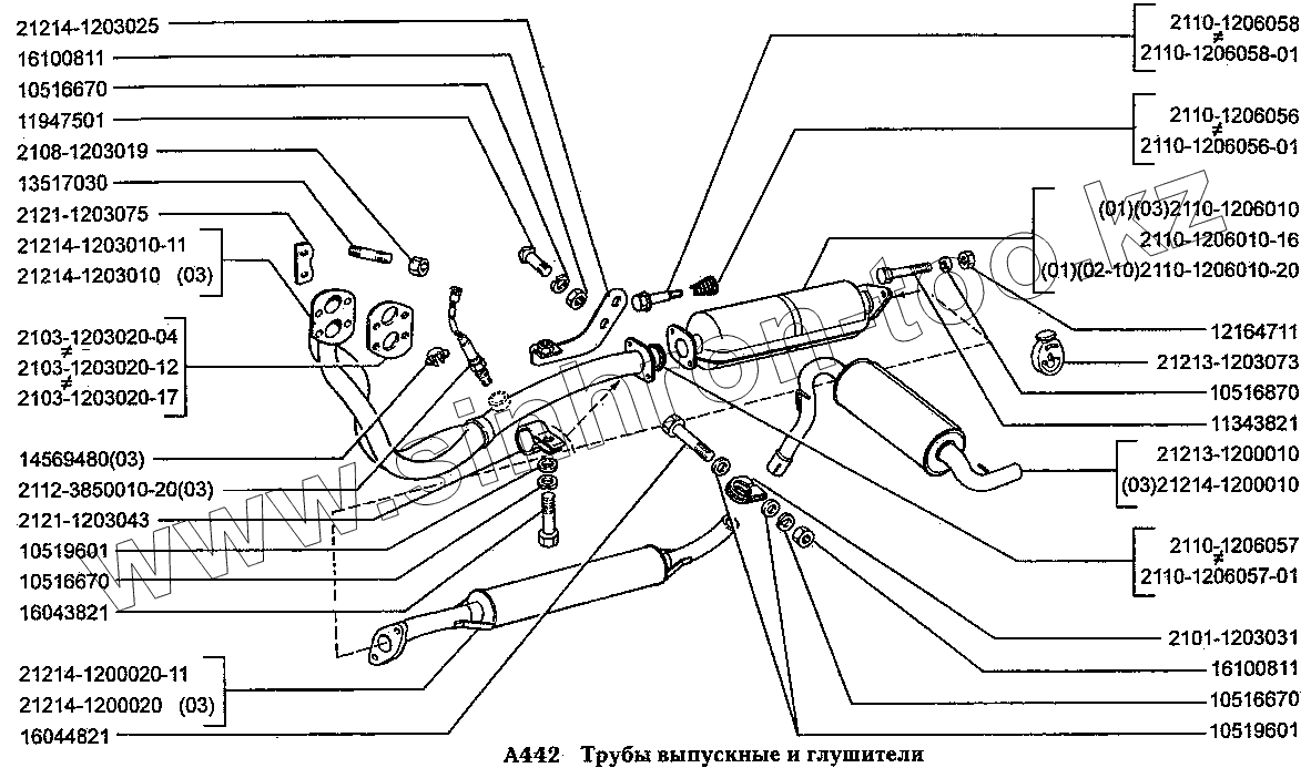 Каталог запасных частей к технике: ВАЗ-2131 (NIVA). Трубы выпускные и глушители