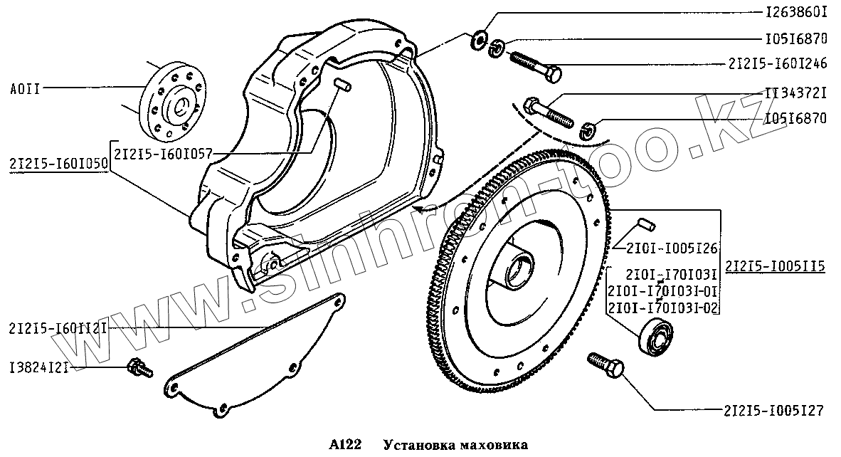 Каталог запасных частей к технике: ВАЗ-2131 (NIVA). Установка маховика (вариант исполнения: Э)