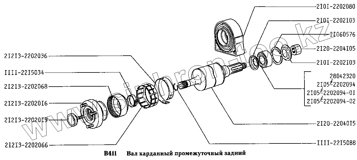 Каталог запасных частей к технике: ВАЗ-2131 (NIVA). Вал карданный промежуточный задний