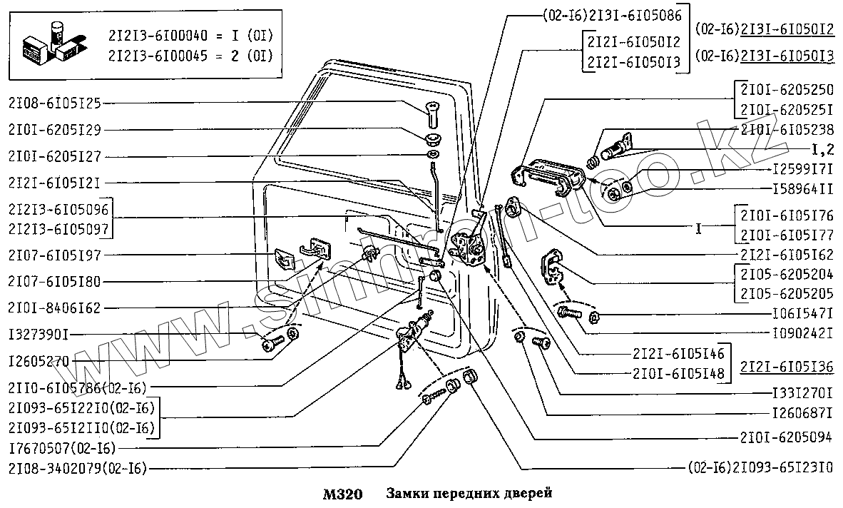 Каталог запасных частей к технике: ВАЗ-2131 (NIVA). Замки передних дверей