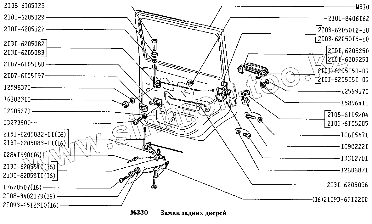 Каталог запасных частей к технике: ВАЗ-2131 (NIVA). Замки задних дверей