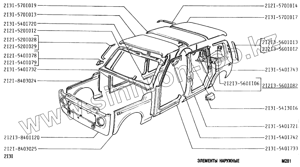 Каталог запасных частей к технике: ВАЗ-2131 (NIVA). Элементы наружные