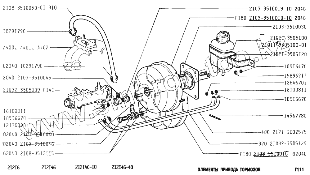 Каталог запасных частей к технике: ВАЗ-2131 (NIVA). Элементы привода тормозов