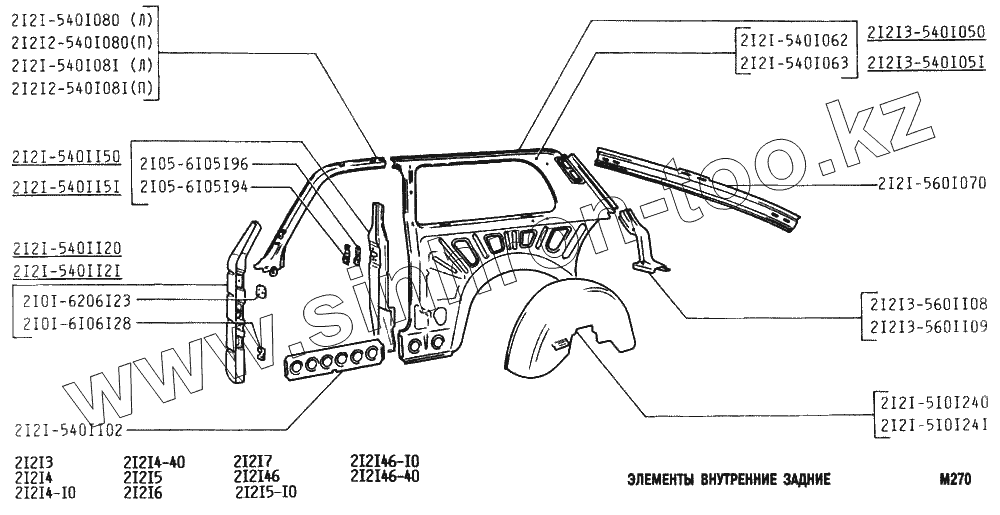 Каталог запасных частей к технике: ВАЗ-2131 (NIVA). Элементы внутренние задние