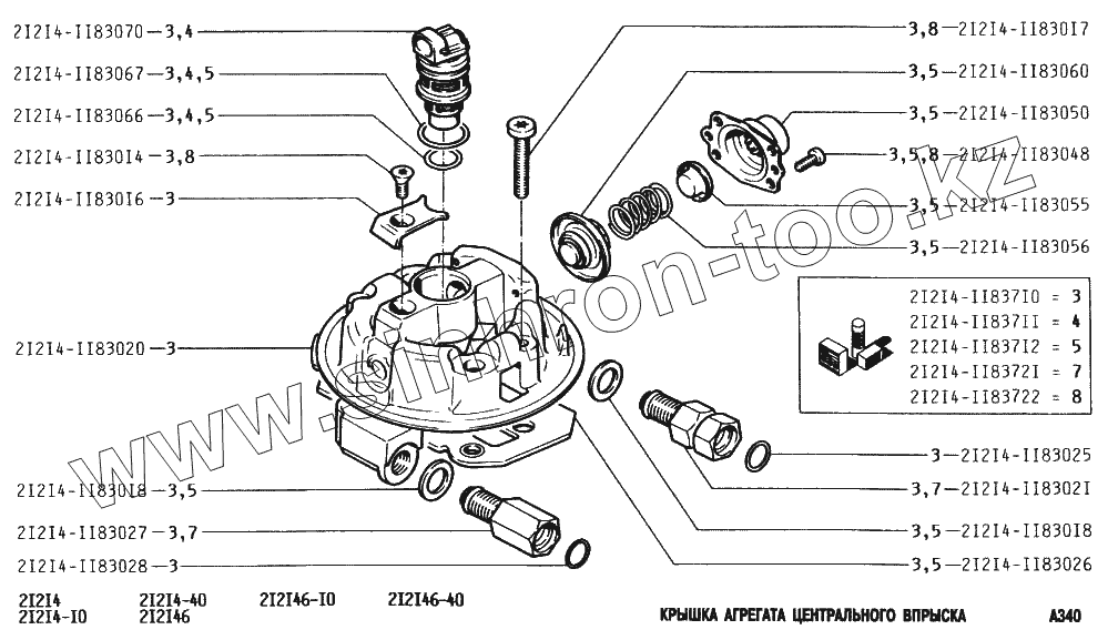 Каталог запасных частей к технике: ВАЗ-2131 (NIVA). Крышка агрегата центрального впрыска