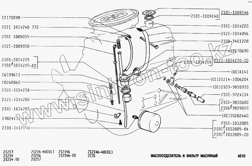 Каталог запасных частей к технике: ВАЗ-2131 (NIVA). Маслоотделитель и фильтр масляный