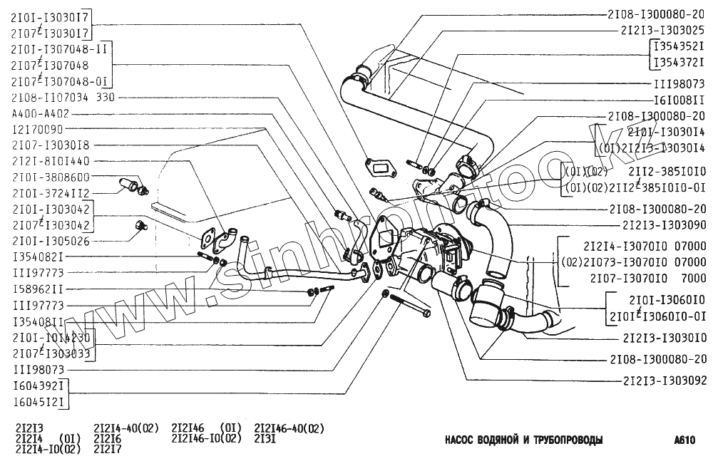 Каталог запасных частей к технике: ВАЗ-2131 (NIVA). Насос водяной и трубопроводы