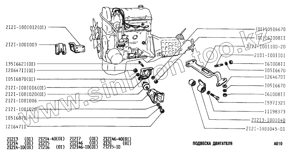 Каталог запасных частей к технике: ВАЗ-2131 (NIVA). Подвеска двигателя
