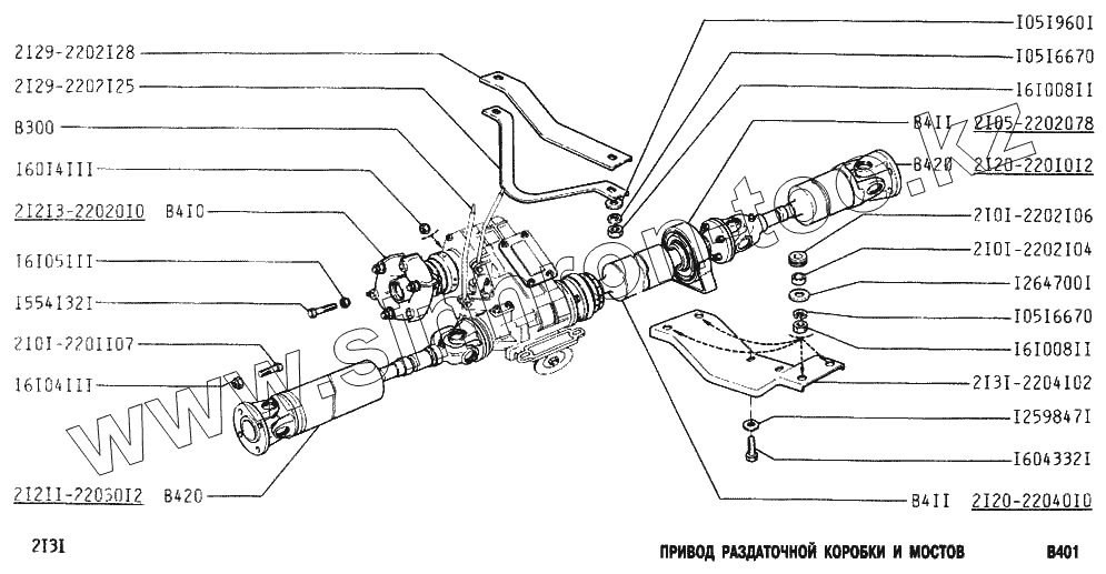 Каталог запасных частей к технике: ВАЗ-2131 (NIVA). Привод раздаточной коробки и мостов