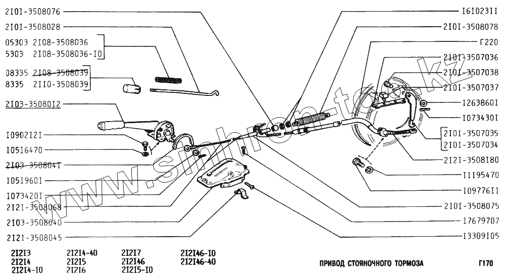 Каталог запасных частей к технике: ВАЗ-2131 (NIVA). Привод стояночного тормоза