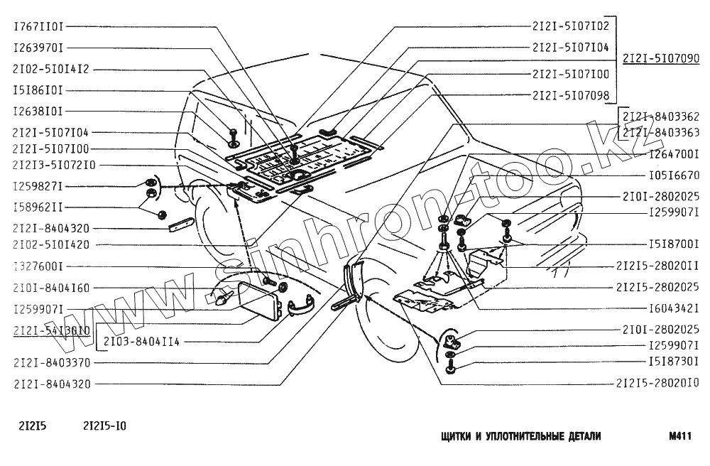 Каталог запасных частей к технике: ВАЗ-2131 (NIVA). Щитки и уплотнительные детали