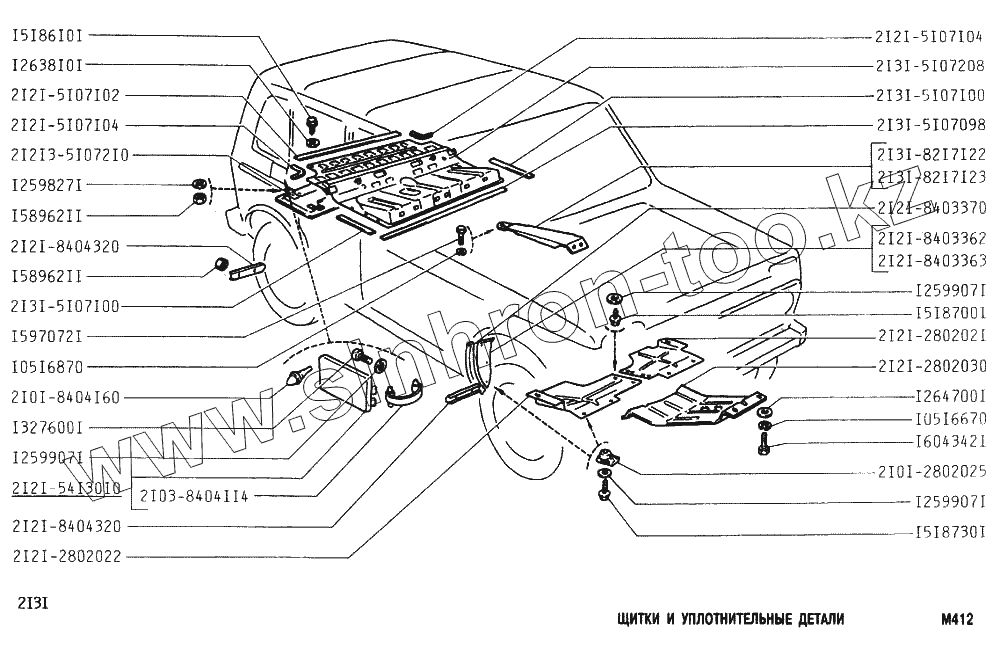 Каталог запасных частей к технике: ВАЗ-2131 (NIVA). Щитки и уплотнительные детали