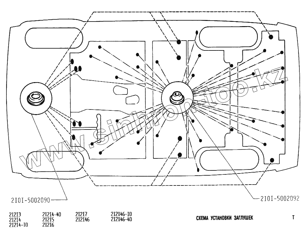 Каталог запасных частей к технике: ВАЗ-2131 (NIVA). Схема установки заглушек