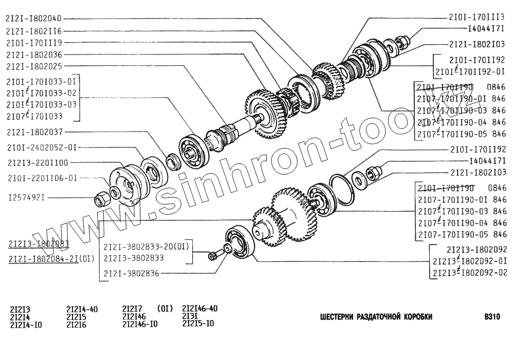 Каталог запасных частей к технике: ВАЗ-2131 (NIVA). Шестерни раздаточной коробки