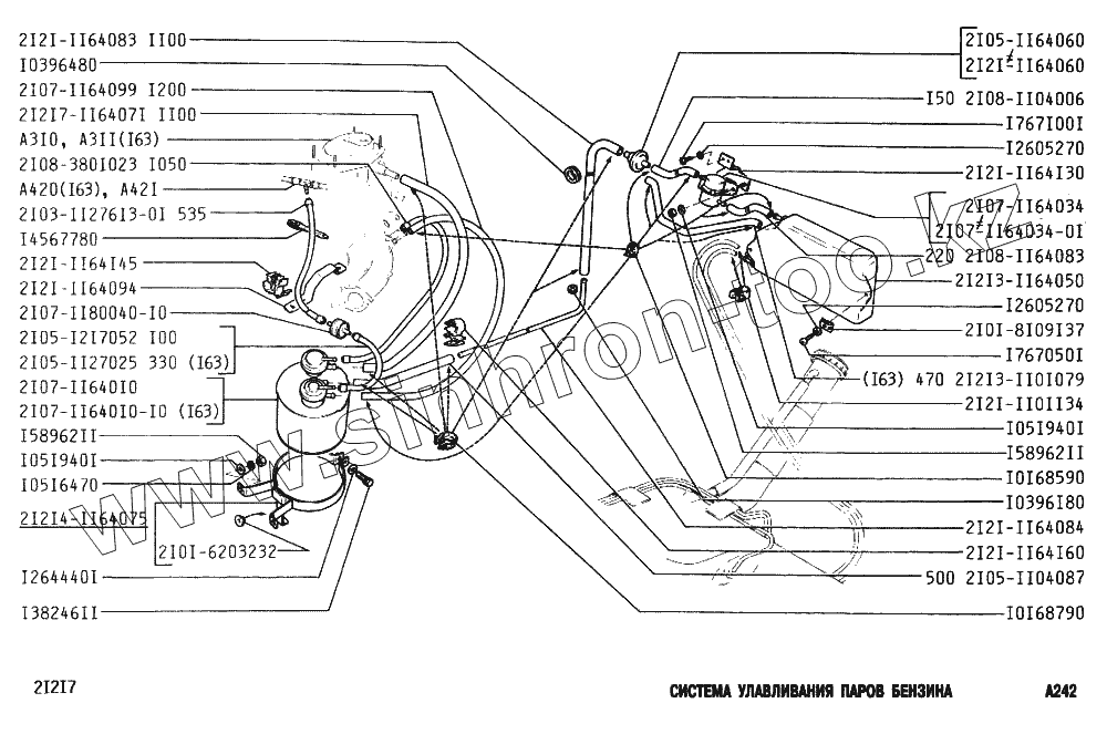 Каталог запасных частей к технике: ВАЗ-2131 (NIVA). Система улавливания паров бензина