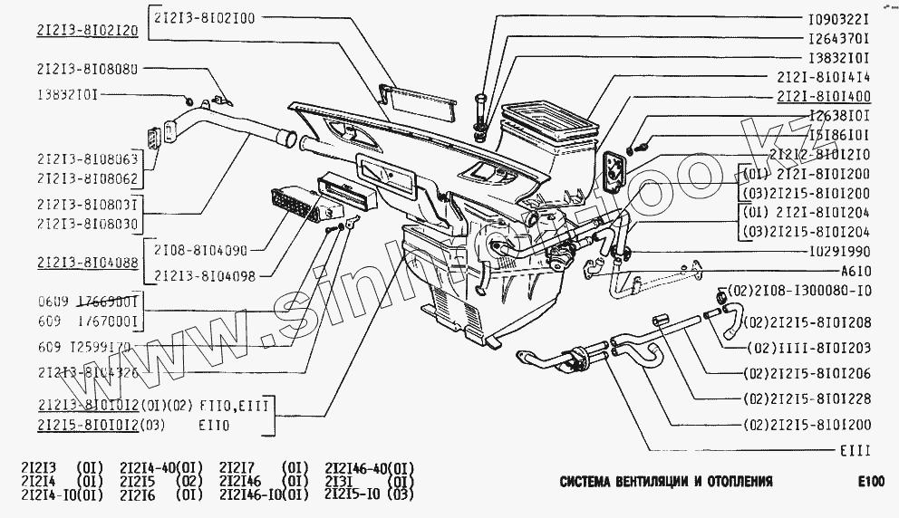 Каталог запасных частей к технике: ВАЗ-2131 (NIVA). Система вентиляции и отопления