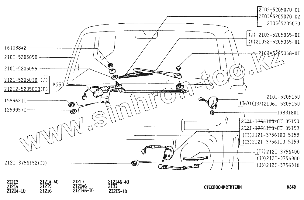 Каталог запасных частей к технике: ВАЗ-2131 (NIVA). Стеклоочистители