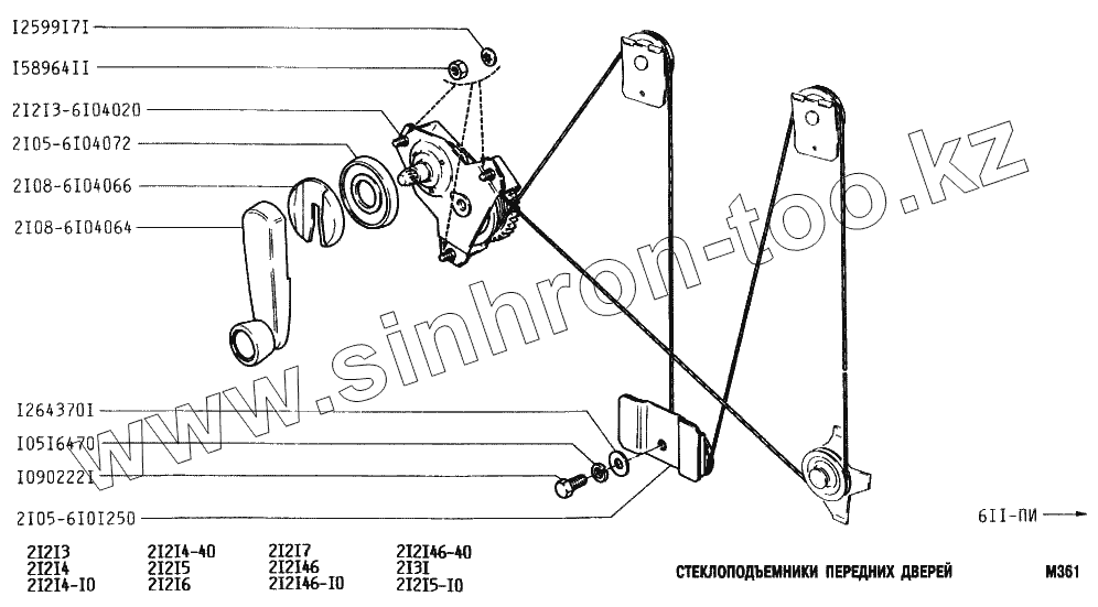 Каталог запасных частей к технике: ВАЗ-2131 (NIVA). Стеклоподъемники передних дверей
