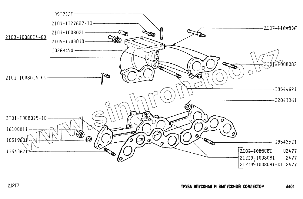 Каталог запасных частей к технике: ВАЗ-2131 (NIVA). Труба впускная и выпускной коллектор