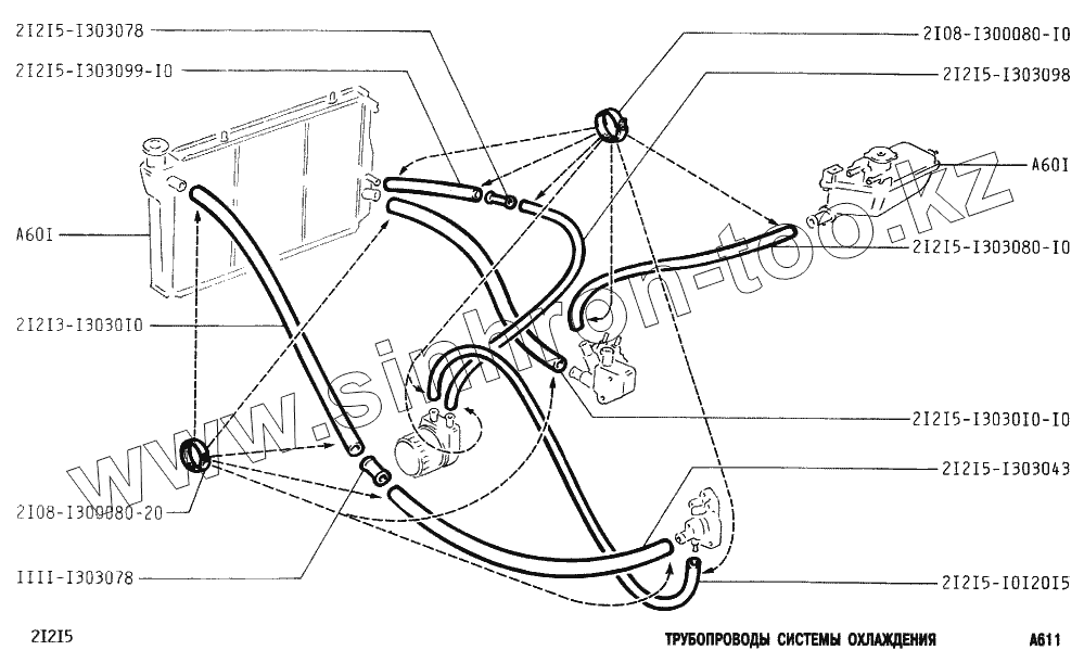 Каталог запасных частей к технике: ВАЗ-2131 (NIVA). Трубопроводы системы охлаждения