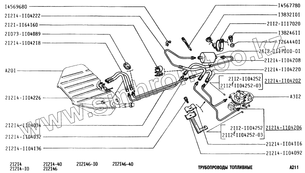 Каталог запасных частей к технике: ВАЗ-2131 (NIVA). Трубопроводы топливные