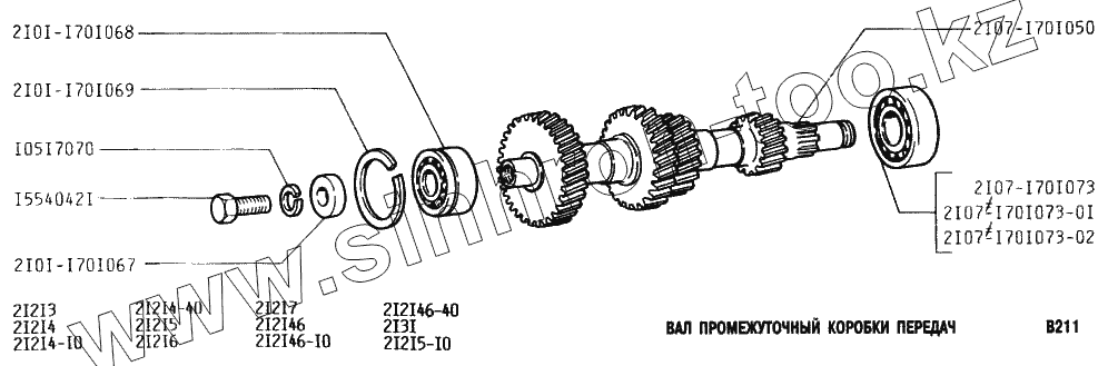 Каталог запасных частей к технике: ВАЗ-2131 (NIVA). Вал промежуточный коробки передач