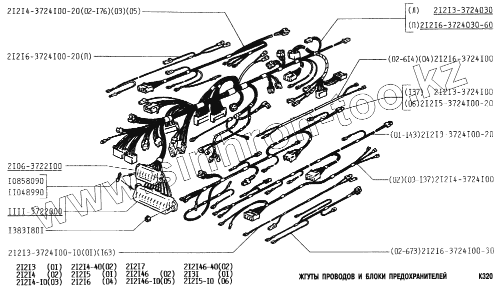 Каталог запасных частей к технике: ВАЗ-2131 (NIVA). Жгуты проводов и блоки предохранителей