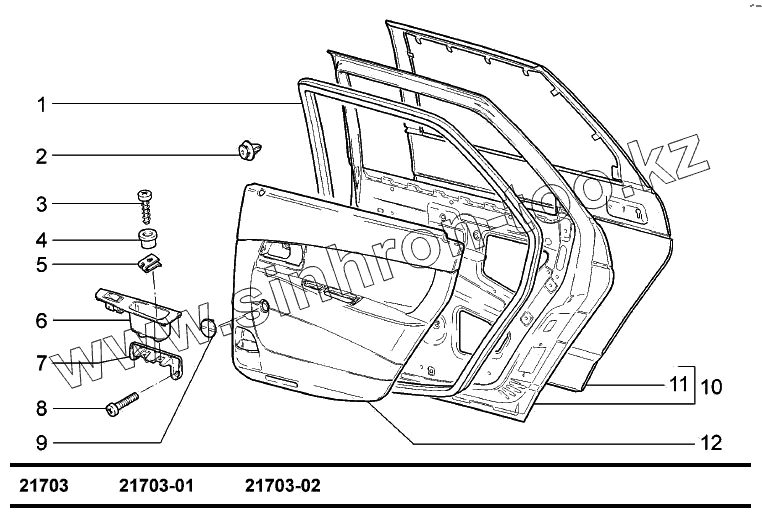 Каталог запасных частей к технике: ВАЗ-2170 (LADA Priora). Двери задние