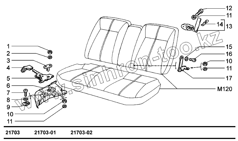 Каталог запасных частей к технике: ВАЗ-2170 (LADA Priora). Механизм установки заднего сиденья