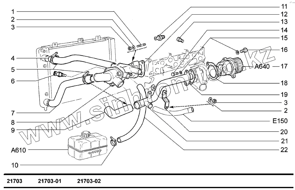 Каталог запасных частей к технике: ВАЗ-2170 (LADA Priora). Насос водяной и трубопроводы