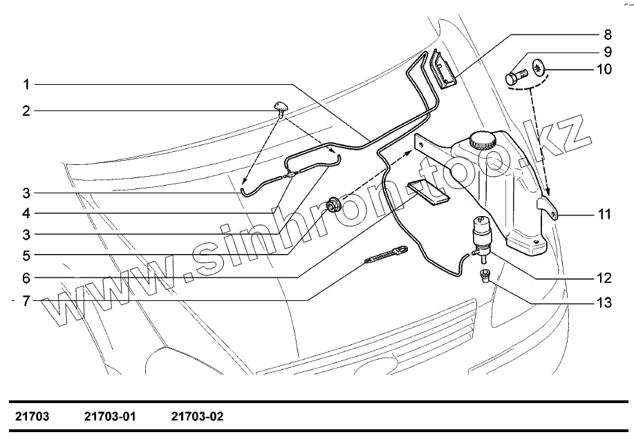 Каталог запасных частей к технике: ВАЗ-2170 (LADA Priora). Омыватель ветрового стекла