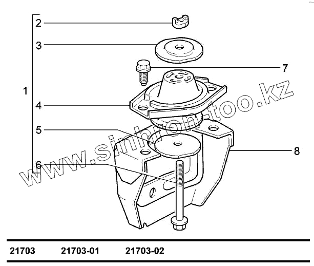 Каталог запасных частей к технике: ВАЗ-2170 (LADA Priora). Подушка правой опоры